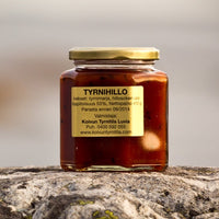 Kokonaisesta variksenmarjasta sekä puolukasta valmistettu herkullinen hillo pyöreässä purkissa.
